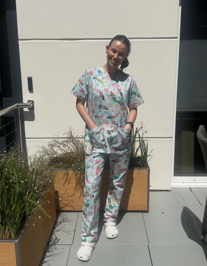 Our newest Mermaids scrub set in action - from the ward to the wild. A fun, ocean-inspired print paired with the comfort, fit, and function you need to get through any shift.